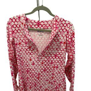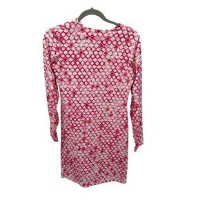 Ibkul Womens Long-Sleeve Printed Dress Size S Pink/White Geometric Active Golf