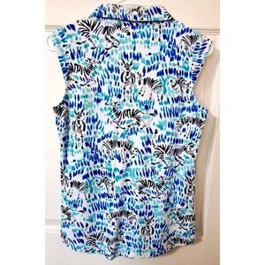 Ibkul Women's S Sleeveless Multicolor Collared Polo Golf Top Zebras