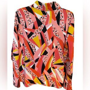 Ibkul Sz XL Vibrant Orange Geometric Print Pickleball Sporty Long Sleeve Polo