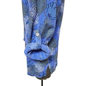 Icantoo Blouse Womens Size M Blue Tropical Print Button Up Shirt Top Cotton