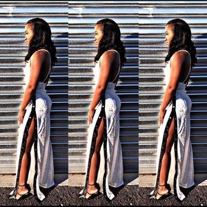 Ice velour jumpsuit with crossed back, with crossed back, and snap away sides.