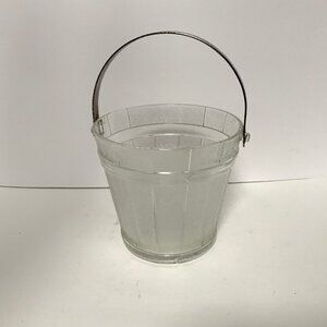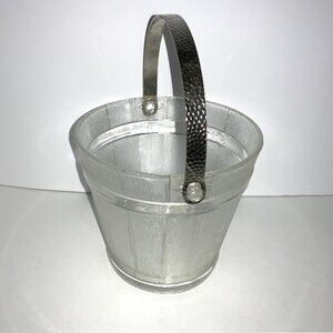 Ice Bucket Glass w/Hammered Metal Handle Oak Barrel Pattern Mid-Century Mod