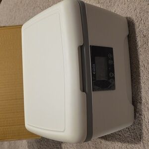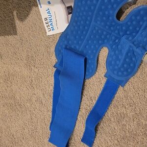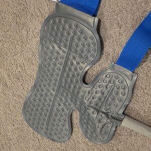 this is brand new in the box and was never used. The shoulder piece does have a few dark spots on it but I'm not sure what it is from since we've never used it.