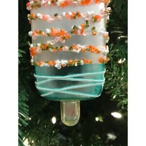 Ice Cream Bar Ornament Glass Pink Blue Christmas Beaded Treats Food Holiday