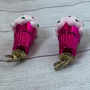 Ice Cream Cone Christmas Tree Ornament Set of 2 with Clips Plastic 5"L
