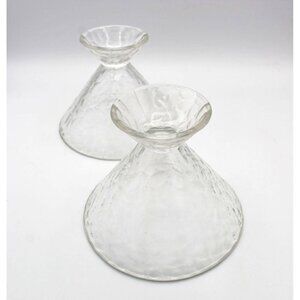 Ice Cream Dish Set of 2 Crackle Pattern Glass Large Clear Vintage Cone Shaped