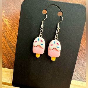 Ice Cream Popsicle Dangle Pink & Sprinkle Drop Earrings.