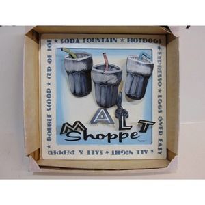 Add a Vintage flair to your shop or restaurant with these colorful 3D metal wall signs from New View. Featuring an ice cream soda Shoppe theme, these original collectibles are perfect for adding decoration to grilles, Shoppes, milkshake chocolate and dairy ice cream stores. The set of two signs includes one for fountain malt hotdogs eggs expresso and the other for various Double scoops Cones and drinks. These multi-colored signs are made in China and are perfect for those who love soda-themed merchandise and memorabilia. The 3D dimensional metal wall decor is perfect for creating a unique atmosphere and adding style to any space. Don't miss out on the opportunity to own these unique signs! Man Cave She Shed Office