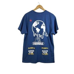 Ice Cream Y2K VINTAGE Mens Blue Graphic T-Shirt Short Sleeve Size L Cotton