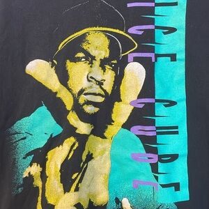 Ice Cube Black Peace Graphic T-shirt size M. Good preowned condition. Minor wash wear fading. See pictures for approximate measurements. Large front graphic of Ice Cube.