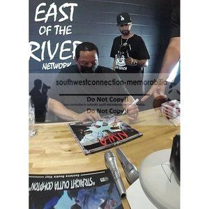 Autographed in Blue Sharpie (by Ice Cube) and Silver Paint Pen (by DJ Yella)