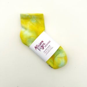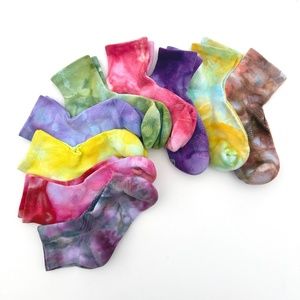 Ice dye colorful cotton athletic socks. Hand dyed in small batches to create a custom finish as pretty as a watercolor painting!