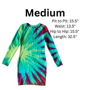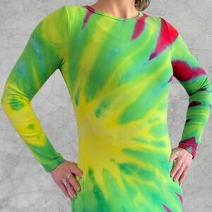 Ice Dyed Long-sleeve Dress - Tie Dye Hippie Boho Drippy Rainbow (Women's Medium)