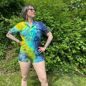 Ice Dyed Romper - Tie Dyed Upcycled - Pockets Soft Summer Spring (Women's Small)