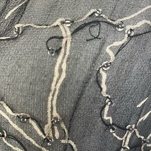 Elevate your wardrobe with this stunning sheer black blouse by Ice. Featuring a delicate floral embroidery accented with small beads, this button-up shirt exudes elegance and sophistication. The lightweight, flowy fabric drapes beautifully, making it a perfect layering piece. Designed with a pointed collar and long sleeves, it offers a timeless yet contemporary appeal. Please note minor fabric wear (as pictured), but this does not take away from its overall charm.