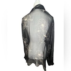 Keywords: Black Sheer Blouse, Embroidered Shirt, Beaded Button-Up, Floral Sheer Top, Long Sleeve Blouse