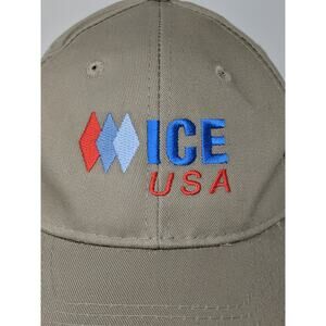 Ice USA Strapback Hat Adjustable Port & Company Embroidered Logo Tan Beige
