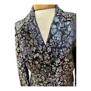 l.C.E. Satin Coat/Jacket Size M/8 Polyester, Nylon Kick Pleat Lined black, purple, yellow, silver Shoulder to shoulder 16.5" Armpit to armpit 19.5" Length 38