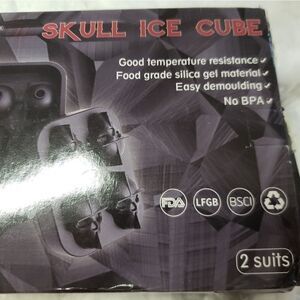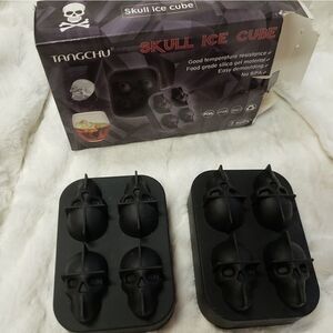 Tangghu Silicone 3D Skull Ice Cube Maker Makes 8 3D ice cubes at a time comes w/small funnel Preowned G--C—4–-003-#Ice