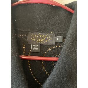 IceIandic Designs Swirls Boiled Wool Button Front Black Gold Jacket Large Women