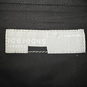 Iceberg Ice Jeans Mens Black on Black Embroidered Button Down Shirt Size L Italy