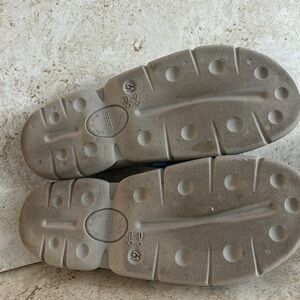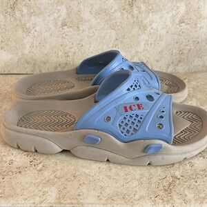 Here is a pair of Iceberg Ice Pool Sliders Made in Italy Unisex Sandals size 41 which, if you look at their size charts that would be a eight for men and a nine for women but I am a women’s 10 and they fit me 😊. The length on the bottom is 10 7/8”