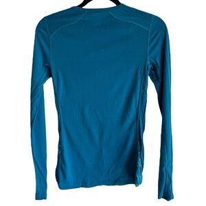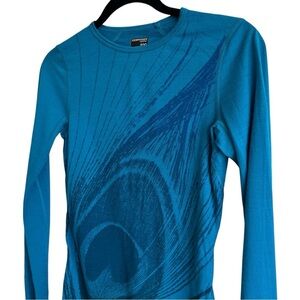 Patterned blue long sleeve top from Icebreaker. 100% wool. In great preowned condition; no visible flaws.