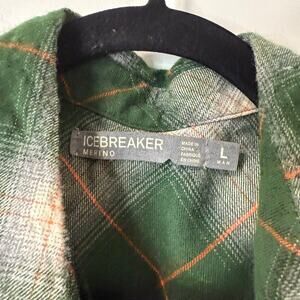 Icebreaker Men's Lodge Plaid Flannel Shirt Green Large Merino Wool Button Front