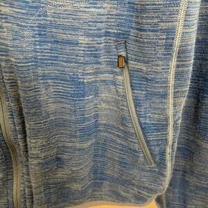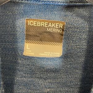 Blue spacedye men's base layer zip front jacket by Icebreaker. 100% merino wool. Features zip closure pockets. Very good pre-owned condition.