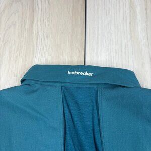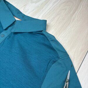 Icebreaker Mens Teal Green Merino Wool Long Sleeve Button Up Hike Shirt Size M