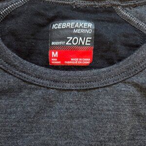 Icebreaker Merino Wool Bodyfit Base Layer Long Sleeve Shirt Men Sz Lg Gray Black