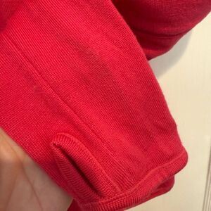 Minor pilling, discoloration spot on one sleeve. Otherwise excellent pre-owned condition.
