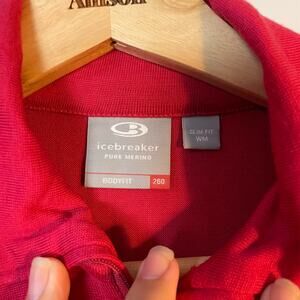 Beautiful red 100% merino wool quarter zip Bodyfit 260 base layer piece from Icebreaker in a women's size medium. It's created to be a slim fit and close to the body for layering. In great condition, gently used. Appears to have some deodorant marks on one side as pictured--should come out in the wash.