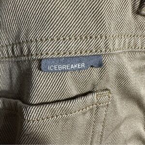 Icebreaker Merino tan men's pants in size 36. Side slash pockets, right thigh zip pocket. 67% wool, 37% cotton. Lightweight, warm layer for hiking, or any sort of outdoor activity, but also perfect for the office.