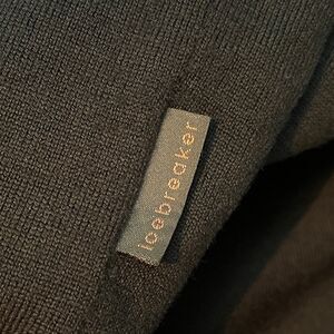 Icebreaker New Zealand Merino Wool Quarter Zip Black Sweater with Thumbholes. Overall in good condition, no pilling but there are two small holes on the back of each arm that have been mended (see last two photos). Not noticeable when wearing. Price reflects flaws.