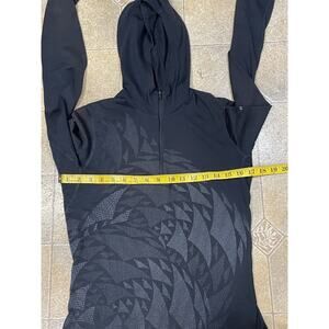 The Icebreaker X Simon Beck Merino BodyFit 200 Oasis Long Sleeve Hoodie in size Medium is a versatile and stylish activewear top perfect for outdoor activities or casual wear. Made from 100% Merino Wool, this hoodie offers exceptional breathability and is lightweight, making it suitable for all seasons. With a solid black color and a pullover style, it features a mock neck, long sleeves, and a hood for added comfort and warmth. Ideal for activities like hiking, running, or gym training, this hoodie is both practical and fashionable for the modern woman on the go.