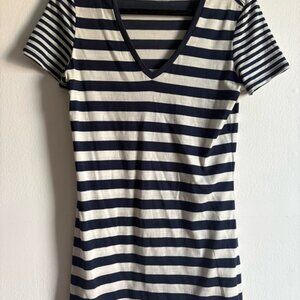 Icebreaker Sz S Striped Wool Dress – classic coastal style with a relaxed, casual fit. Features nautical-inspired navy and white stripes, short sleeves, and breathable merino wool for natural comfort. Perfect for layering or wearing solo in spring and fall. Lightweight, soft, and easy to wear.