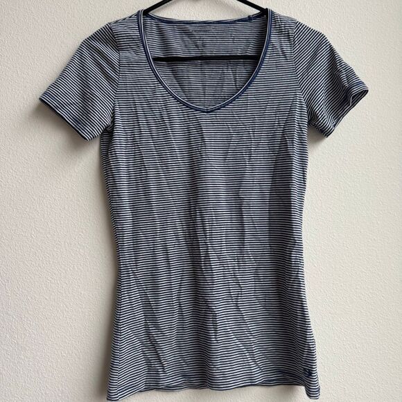 Icebreaker T-Shirt Womens S Blue Striped Merino Wool Blend Hiking Climb Nature