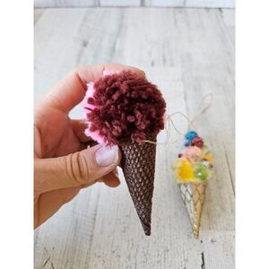brown pink ornament is about 4-in long by 2 in diameter, other ornament is about 5 in by 2 in by 2 in, overall good condition, no significant problems