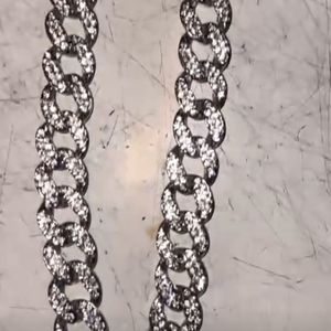 Beautiful Stainless Steel cuban link 24" long bling out Necklace with crystals. Reversible with textured other side. View all photos as they are apart of description and contain significant information and is exact item you will receive. About 10mm wide!