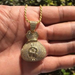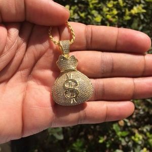 Iced Out Money Bag Gold - Solid 925 Sterling Silver