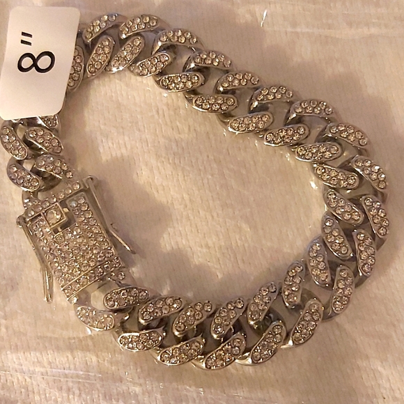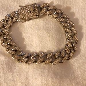 SILVER PLATED ICED OUT BLING BRACELET 8"