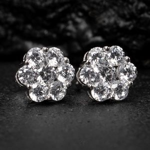 Iced White Gold Cluster 925 Sterling Silver Best Flower Screw Back Stud Earrings
