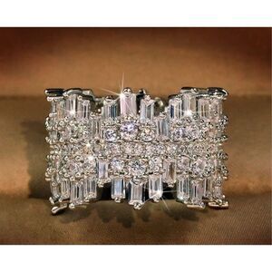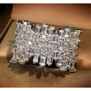 Absolutely beautiful and stunning silver iced ring that just sparkles and shines. Rich ice crystals CZS in a modern pattern make this ring scream for attention. Look like a million but don’t spend it. Ring is size 7 and only 1 available.