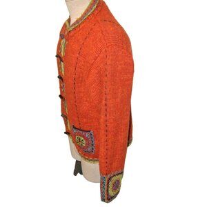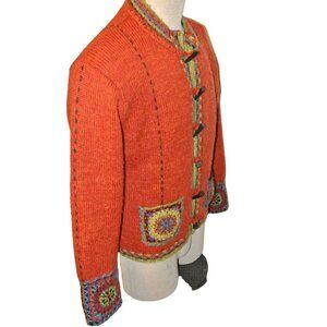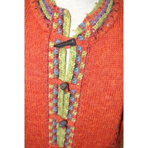 Icelandic Cardigan With Beading and Horn Style Buttons Alpaca Wool Blend Sx L