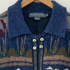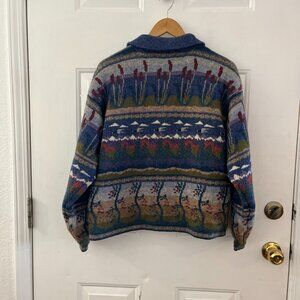 Icelandic Design 100% Lined Wool Fair Isle Duck Full Zip Sweater Sz Lr