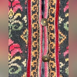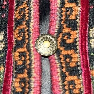Gently pre loved excellent condition no visible flaws! Hard to find rare colorway with red and green. Metal buttons with a stretchy black closure.