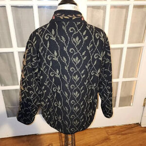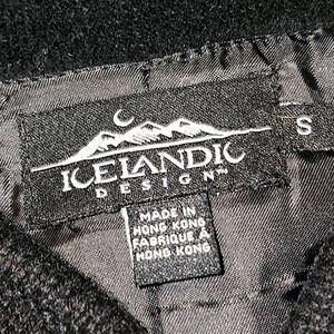Icelandic Design Black Floral Embroidered Wool Blend Full Zip Sweater Jacket S