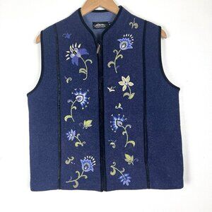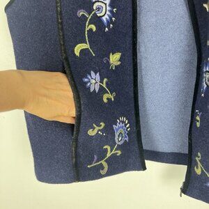 Icelandic Design Boiled Wool Vest sz M Purple Floral Embroidered Pockets Novelty