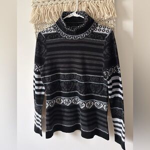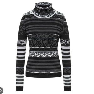 Icelandic Design Catalina Merino Wool Fair Isle Turtleneck Sweater Black Nordic